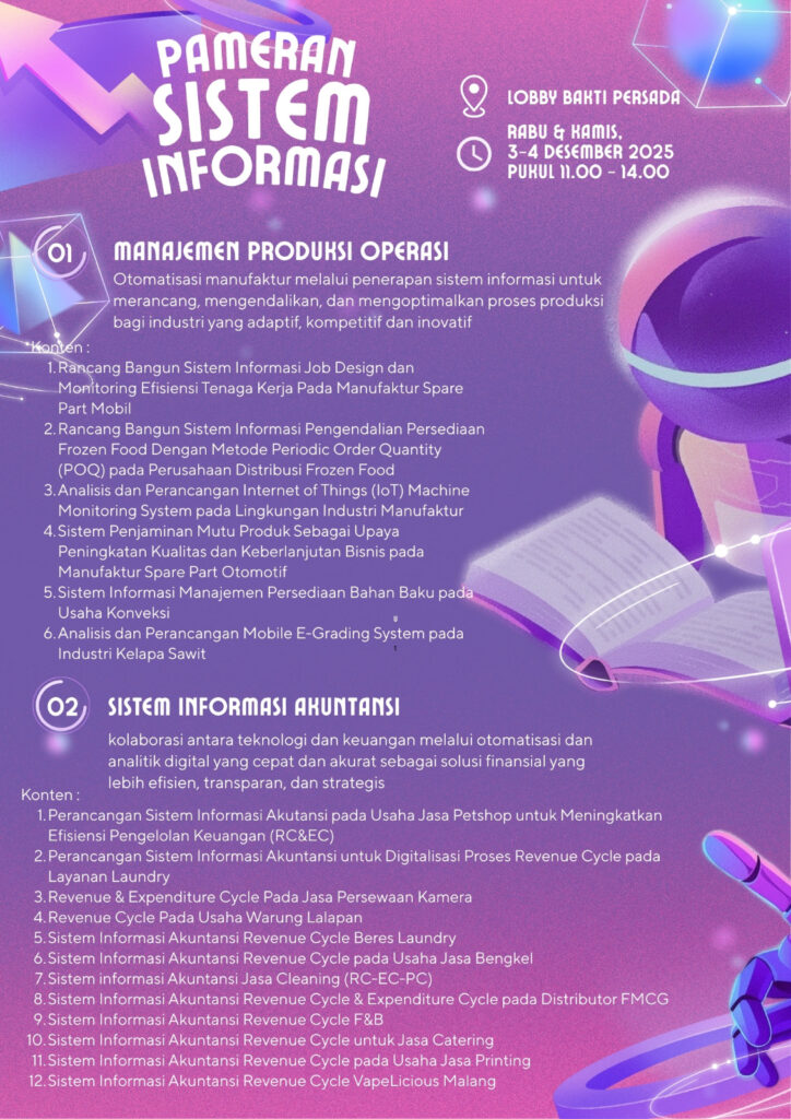 Jangan lewatkan Pameran Prodi Information System Universitas Ma Chung yang menghadirkan dua agenda spesial berisi karya terbaik mahasiswa Sistem Informasi!