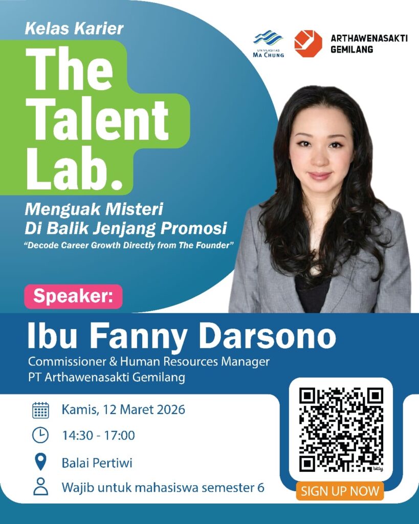 Melalui kelas karier ini, kamu akan belajar langsung dari Commissioner & Human Resources Manager PT Arthawenasakti Gemilang yang merupakan salah satu perusahaan pendiri Universitas Ma Chung