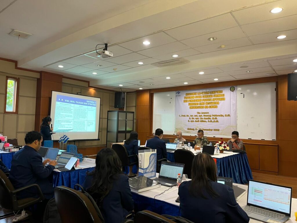 “Kami memulai rangkaian asesmen lapangan hari ini (10 Desember 2025) dan harapannya besok dapat mengunjungi lokasi praktik kerja mahasiswa Profesi Apoteker. Kelancaran proses ini penting karena kami akan menyusun potret program studi/isntitusi ini dalam borang. Untuk itu, kami mohon izin meninjau fasilitas pendidikan, penelitian, dan pengabdian masyarakat guna mengonfirmasi informasi yang telah disampaikan,” ujarnya.