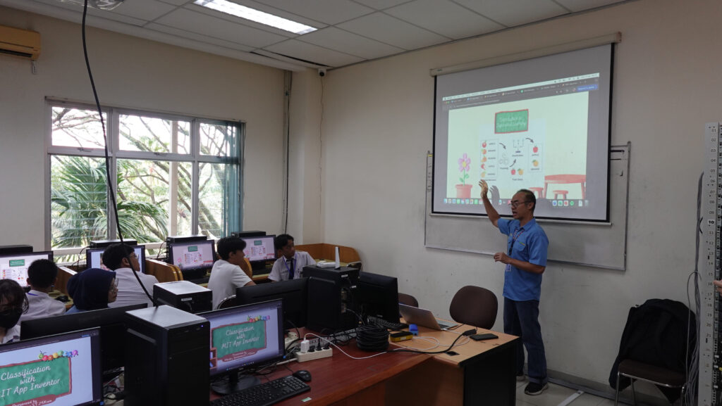 Sementara itu, siswa kelas 8 mengikuti pembelajaran bertema “Classification with MIT App Inventor” yang dibawakan oleh Hendry selaku Ketua Program Studi Computer Science in Artificial Intelligence and Digital Innovation (Teknik Informatika). Adapun siswa kelas 9 mempelajari dasar-dasar UI/UX Design bersama Bintang Pramudya Putra Prasetya, S.Sn., M.Ds., dosen dari Program Studi Desain Komunikasi Visual (DKV).