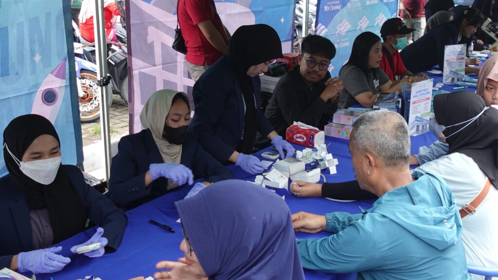 Program ini menghadirkan kolaborasi lintas keilmuan dari Program Studi Farmasi, Optometri, dan Profesi Apoteker. Dalam kegiatan ini, peserta dapat memeriksakan kondisi kesehatan dasar mereka, mulai dari cek mata, gula darah, tekanan darah, kolesterol, hingga mendapatkan konsultasi terkait kesehatan maupun informasi mengenai studi di Universitas Ma Chung. Seluruh layanan diberikan tanpa biaya, sehingga menarik perhatian banyak warga yang memanfaatkan kesempatan tersebut.