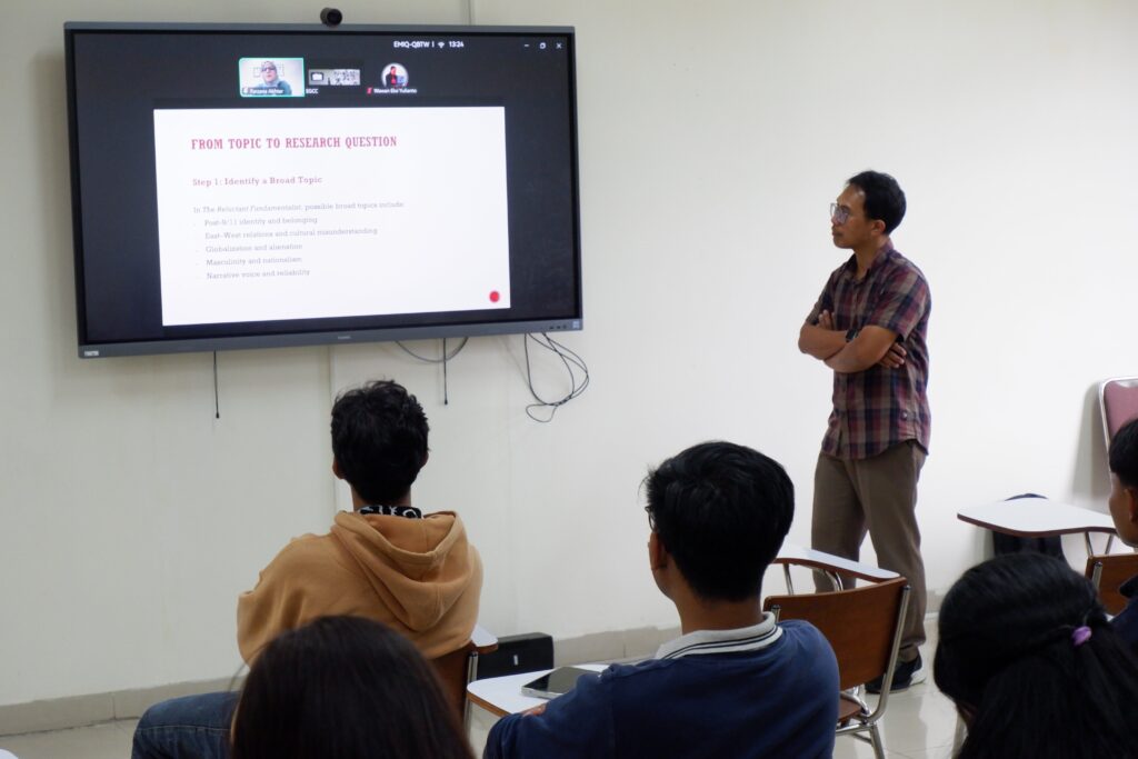 Dalam pemaparannya, ia menjelaskan langkah-langkah praktis untuk merumuskan pertanyaan penelitian yang spesifik, relevan, dan mampu mendorong inovasi. Ia juga berbagi pengalaman pribadinya dalam mengembangkan topik-topik penelitian yang relevan dengan tantangan dunia seperti komunikasi kreatif. Prof. Farzana menekankan bahwa pertanyaan penelitian yang baik harus didasarkan pada masalah nyata dan memiliki potensi dampak luas, termasuk contoh-contoh dari penelitian internasional yang telah ia lakukan.