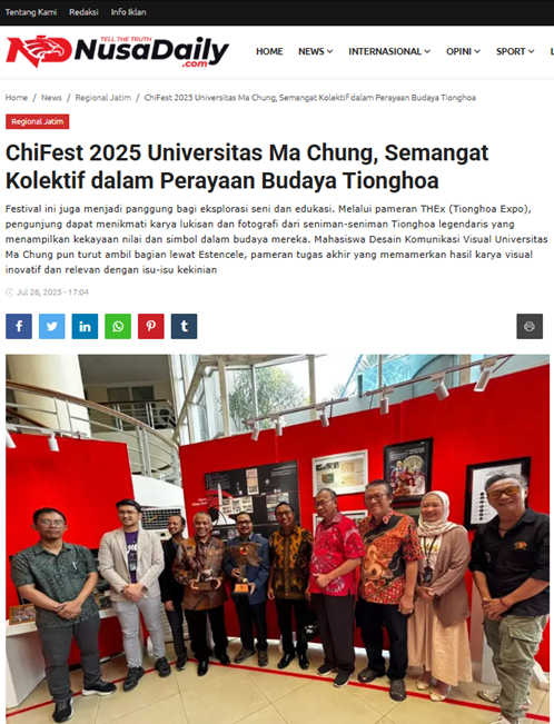 ChiFest 2025 bukan sekadar festival budaya, melainkan juga ruang terbuka untuk menjalin hubungan antarkomunitas dan memperkaya pemahaman lintas budaya dalam konteks masyarakat Indonesia yang majemuk. Selama dua hari, pengunjung diajak menjelajahi kekayaan budaya Tionghoa dalam kemasan yang segar dan interaktif, mulai dari beragam sajian kuliner halal dan non-halal, berbagai penampilan seperti seperti Wushu, Tai Chi, Tarian Ramayana, Tarian Api, hingga pameran karya kreatif yang menggugah imajinasi. Semua ini dihadirkan sebagai bagian dari komitmen Universitas Ma Chung dalam membangun ekosistem pendidikan yang unggul, kreatif, berdaya cipta dan inklusif.