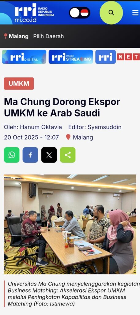 Dalam prosesnya, Ma Chung telah menyelenggarakan kegiatan Business Matching: Akselerasi Ekspor UMKM melalui Peningkatan Kapabilitas dan Business Matching.