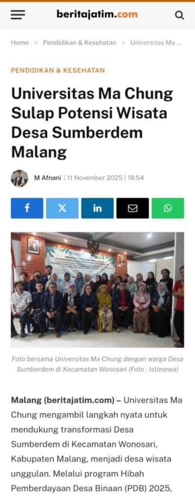 Universitas Ma Chung Sulap Potensi Wisata Desa Sumberdem Malang